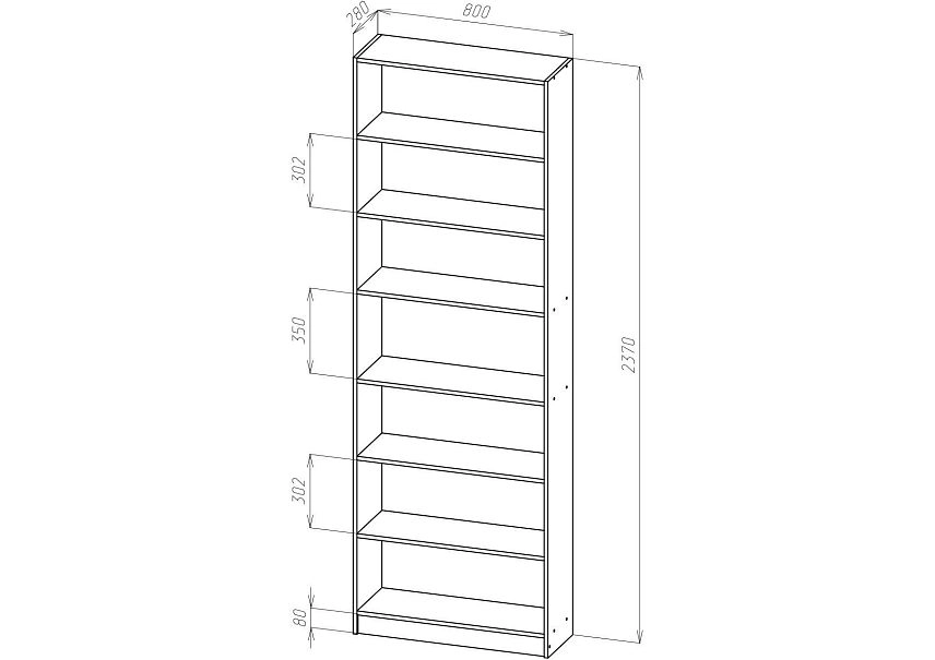 | Книжные шкафы, стеллажи от 600 мм до 1000 мм | 350 | 1000 | 600 |