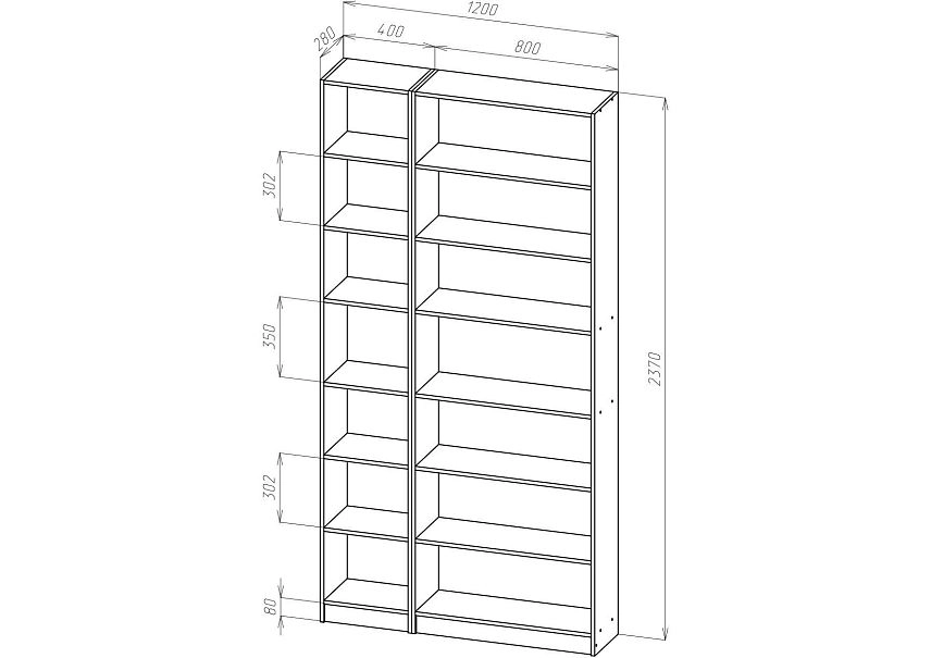 | Книжные шкафы, стеллажи от 600 мм до 1000 мм | 350 | 1000 | 600 |