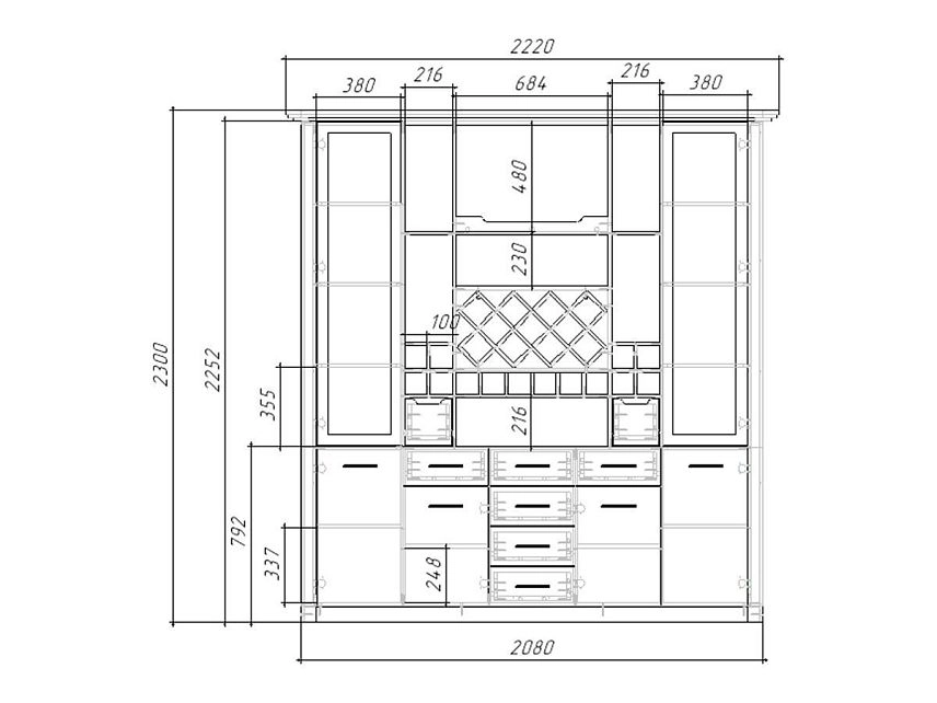 | Шкаф 6 дверный, широкий от 2500 до 3000 мм (7-8 пачек) | 700 | 2200 | 1000 |