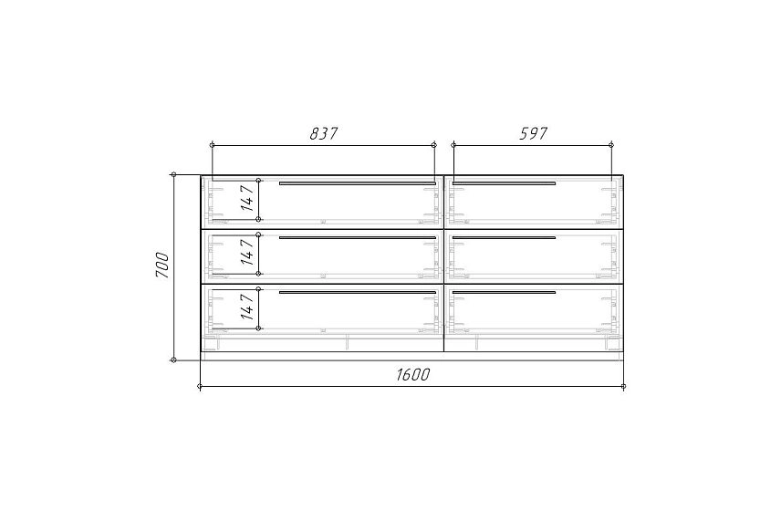 | Шкаф 6 дверный, широкий от 2500 до 3000 мм (7-8 пачек) | 700 | 2200 | 1000 |