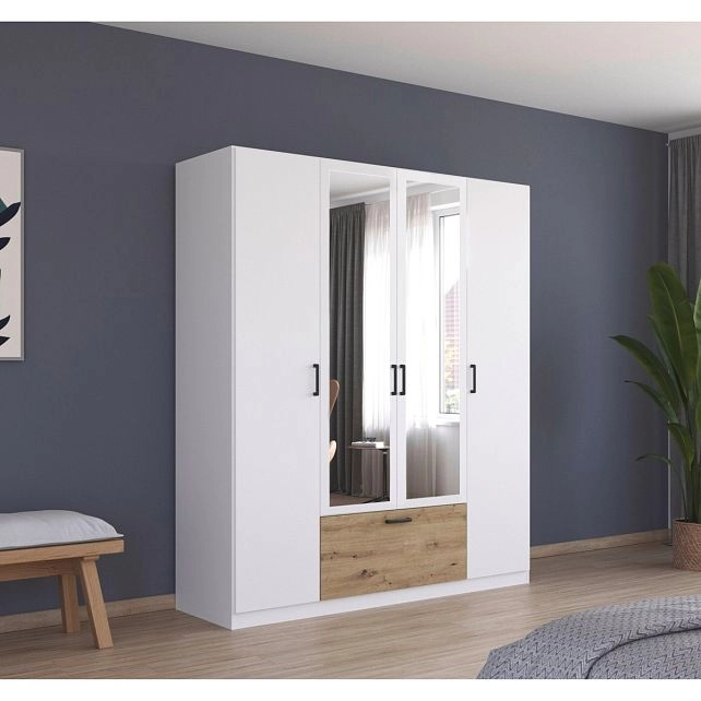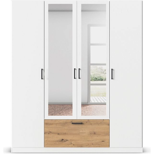 - Шкаф распашной Бари-2 Белый / Дуб Бунратти