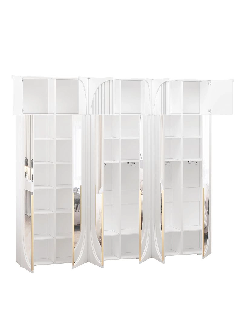 Размер отделений в каждом наполнении изготавливается по стандарту фабрики и может отличаться от фото. Если вам необходимы определенные размеры отделений в наполнении согласуйте это в чате с менеджером. При высоте шкафа 230-270 см антресоль слитная, 280-310 см съемная.