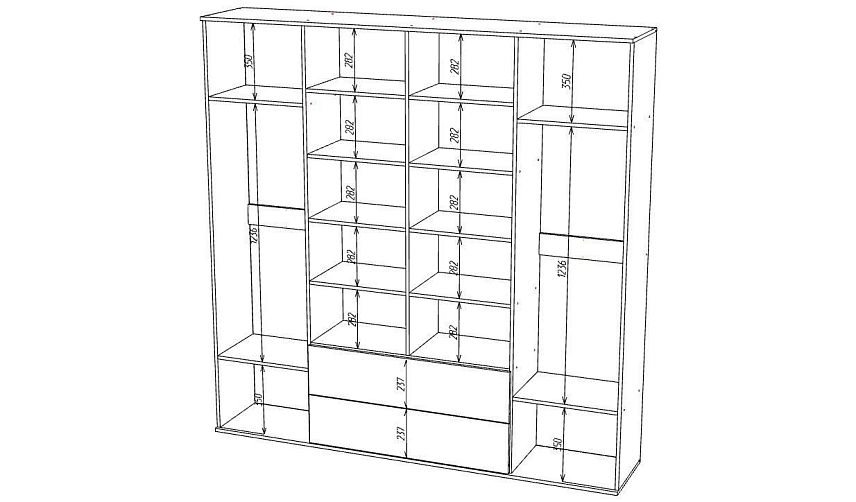 Наполнение: Полка + выдвижной кронштейн + Полка/ 4 полки + 2 ящика + 4 ящика/ Полка + выдвижной кронштейн + Полка