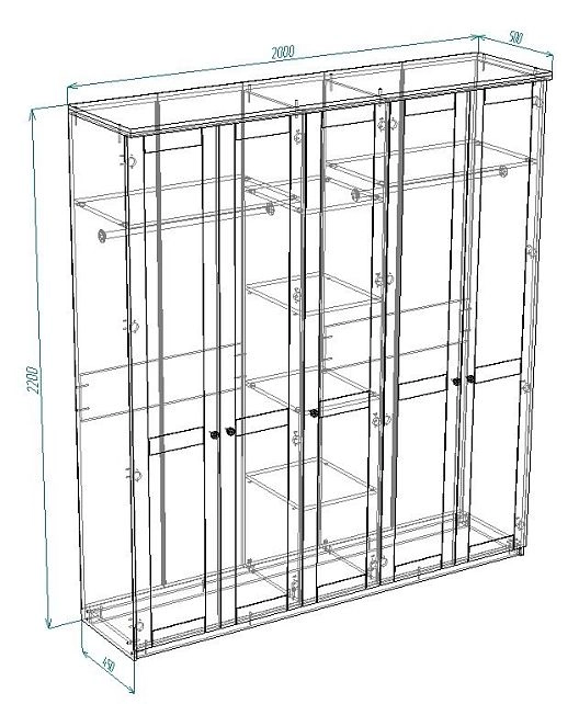 | Шкаф-купе 4 дверный (6-7 пачек) | 550 | 1600 | 800 |