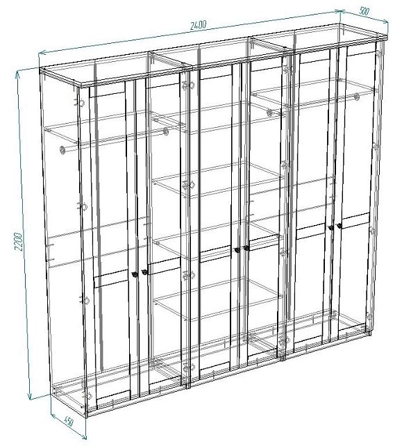 | Шкаф-купе 4 дверный (6-7 пачек) | 550 | 1600 | 800 |