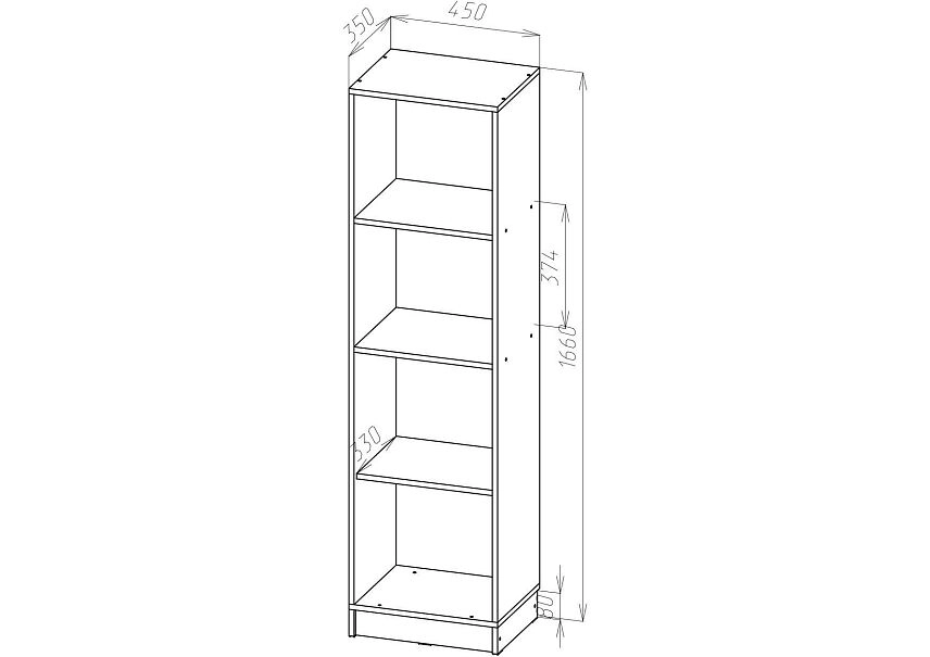 | Книжные шкафы, стеллажи от 600 мм до 1000 мм | 350 | 1000 | 600 |
